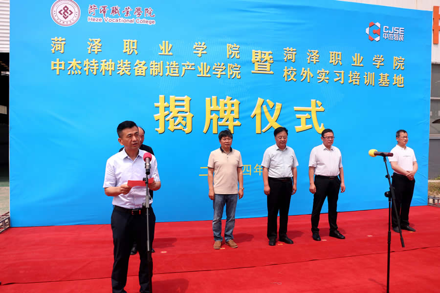 為深化產(chǎn)教融合、加強(qiáng)校企合作,實(shí)現(xiàn)學(xué)生技能培養(yǎng)與行業(yè)市場(chǎng)需求的高度契合,為行業(yè)與社會(huì)培養(yǎng)輸送源源不斷的高素質(zhì)技能人才,5月20日,“菏澤職業(yè)學(xué)院中杰特種裝備制造產(chǎn)業(yè)學(xué)院”暨“菏澤職業(yè)學(xué)院校外實(shí)習(xí)培訓(xùn)基地”揭牌儀式隆重舉行。菏澤職業(yè)學(xué)院黨委副書(shū)記、院長(zhǎng)袁宗建、菏澤市企業(yè)家協(xié)會(huì)常務(wù)秘書(shū)長(zhǎng)鄧顯杰、菏澤魯西新區(qū)管委會(huì)副主任、文化衛(wèi)生服務(wù)中心主任孔魯民、山東中杰特種裝備股份有限公司董事長(zhǎng)張春雨、菏澤職業(yè)學(xué)院黨委委員、宣傳部部長(zhǎng)郭志合出席揭牌儀式;菏澤職業(yè)學(xué)院師生代表,中杰特裝員工代表等100余人參加活動(dòng)。