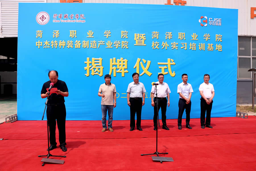隨后,在與會(huì)全體的矚目與期待中,“菏澤職業(yè)學(xué)院中杰特種裝備制造產(chǎn)業(yè)學(xué)院”、“菏澤職業(yè)學(xué)院校外實(shí)習(xí)培訓(xùn)基地”正式揭牌,宣告了制造產(chǎn)業(yè)學(xué)院的正式成立,標(biāo)志著菏澤職業(yè)學(xué)院與山東中杰特種裝備股份有限公司的合作共建邁出了新步伐,開(kāi)啟了產(chǎn)教融合、協(xié)同育人的新紀(jì)元。