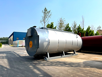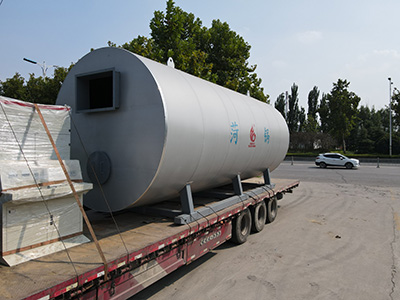 YY(Q)W系列導(dǎo)熱油爐(有機(jī)熱載體爐)為快裝臥式強(qiáng)制循環(huán)燃油(氣)導(dǎo)熱油爐(有機(jī)熱載體爐)。本系列導(dǎo)熱油爐(有機(jī)熱載體爐)結(jié)構(gòu)緊湊,受熱面由內(nèi)、中、外(或內(nèi)、外)密排的圓盤管構(gòu)成,內(nèi)層管為輻射受熱面。中、外盤管為對(duì)流受熱面。燃料在內(nèi)盤管組成的燃燒室內(nèi)燃燒放熱,經(jīng)輻射受熱面吸收大部分熱量后,高溫?zé)煔膺M(jìn)入對(duì)流受熱面進(jìn)行換熱。換熱后的煙氣經(jīng)爐本體出煙口排出,進(jìn)入空氣預(yù)熱器,與空氣充分換熱,換熱后的煙氣再進(jìn)入冷凝器,與水進(jìn)行換熱,最后煙氣溫度降低至100℃以下,經(jīng)煙囪排入大氣。